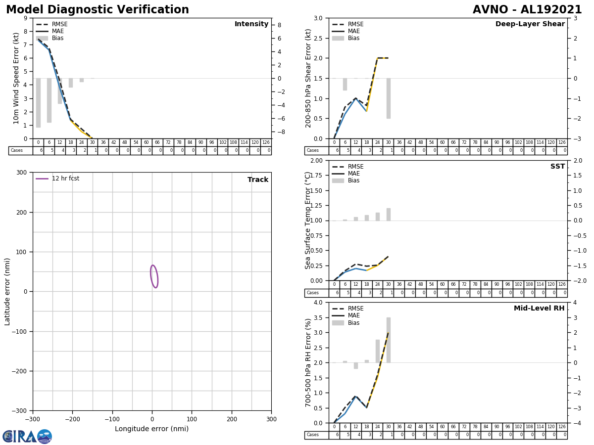 GFS Diagnostic Verification - Intensity, 850-200 mb Shear, Sea Surface Temperature, and 700-500 mb Relative Humidity