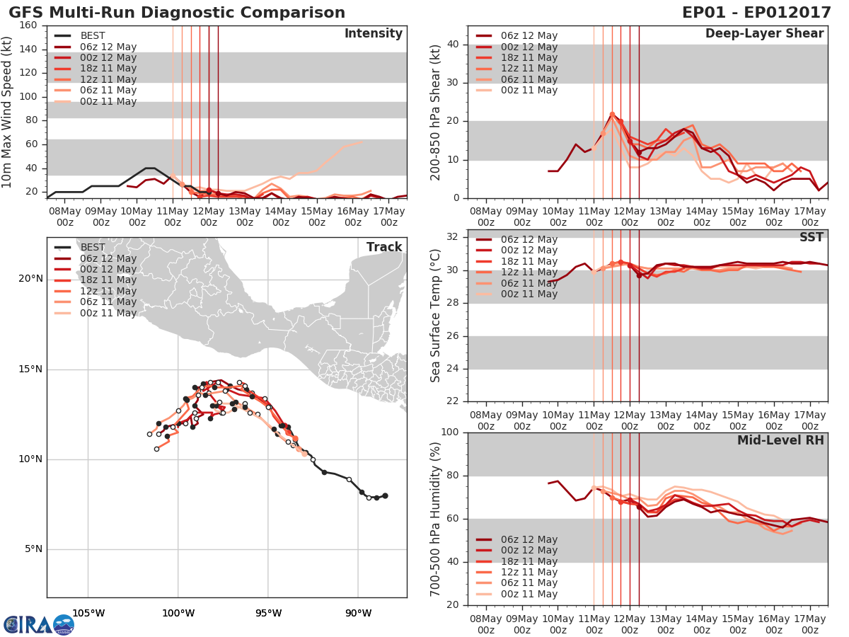 GFS Diagnostic Verification - Intensity, 850-200 mb Shear, Sea Surface Temperature, and 700-500 mb Relative Humidity