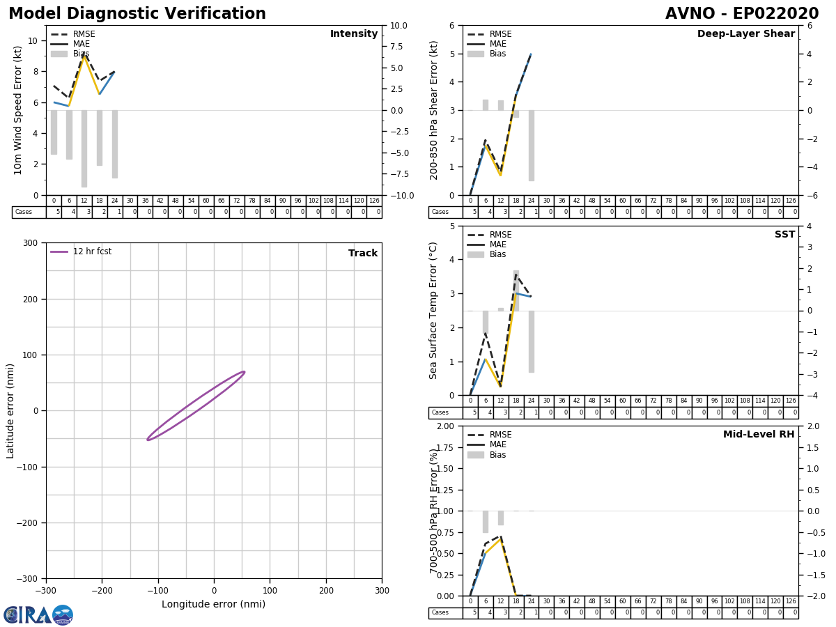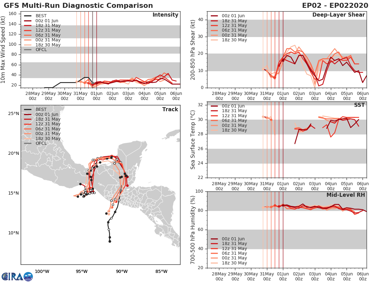 GFS Diagnostic Verification - Intensity, 850-200 mb Shear, Sea Surface Temperature, and 700-500 mb Relative Humidity