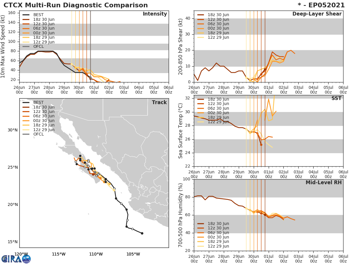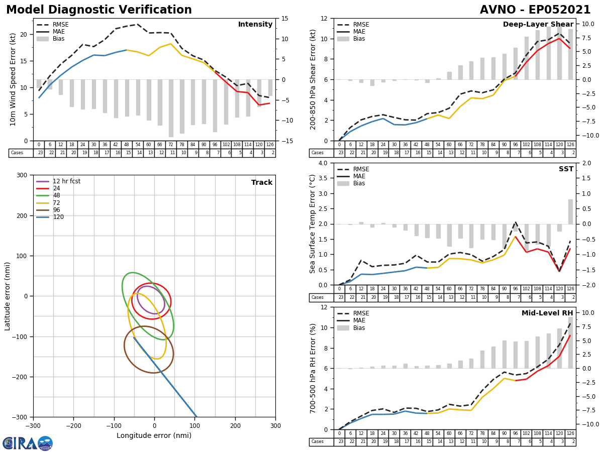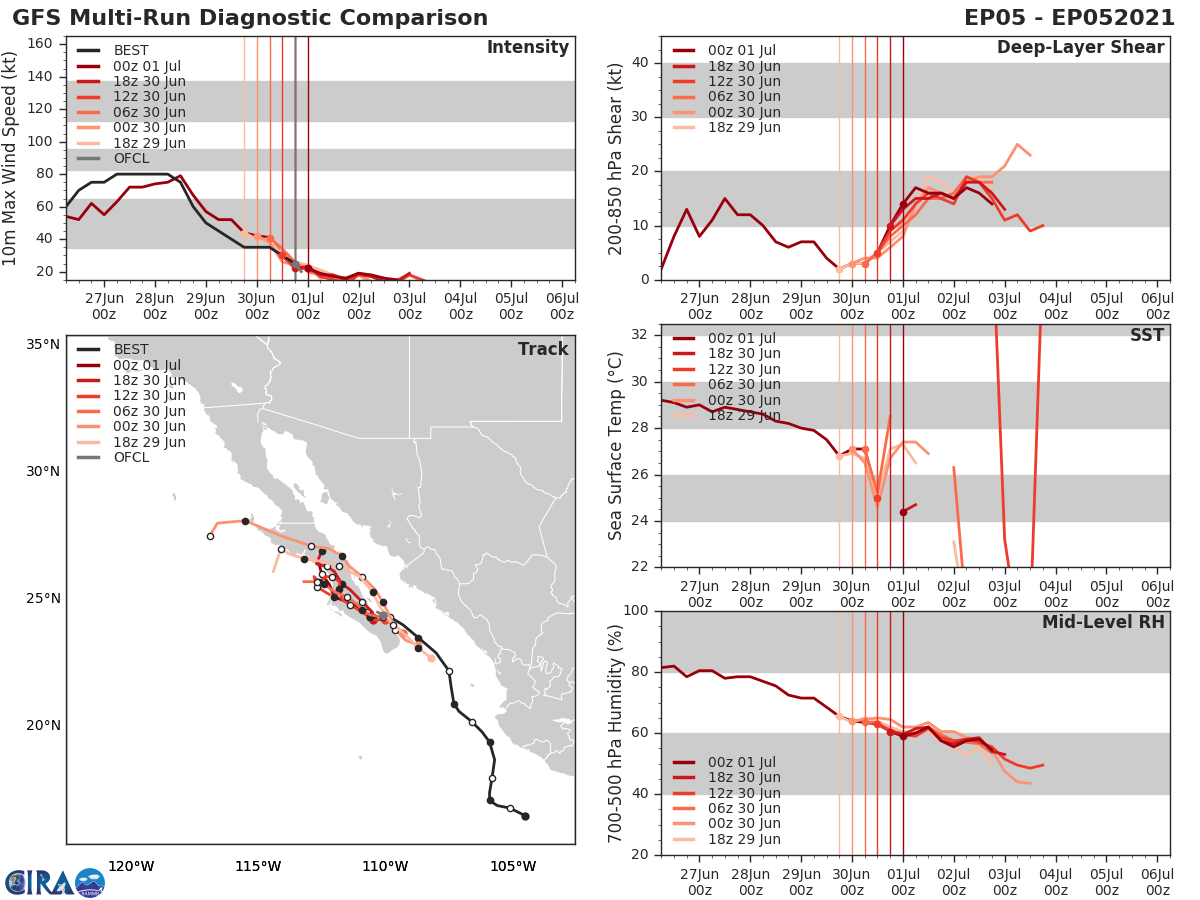 GFS Diagnostic Verification - Intensity, 850-200 mb Shear, Sea Surface Temperature, and 700-500 mb Relative Humidity