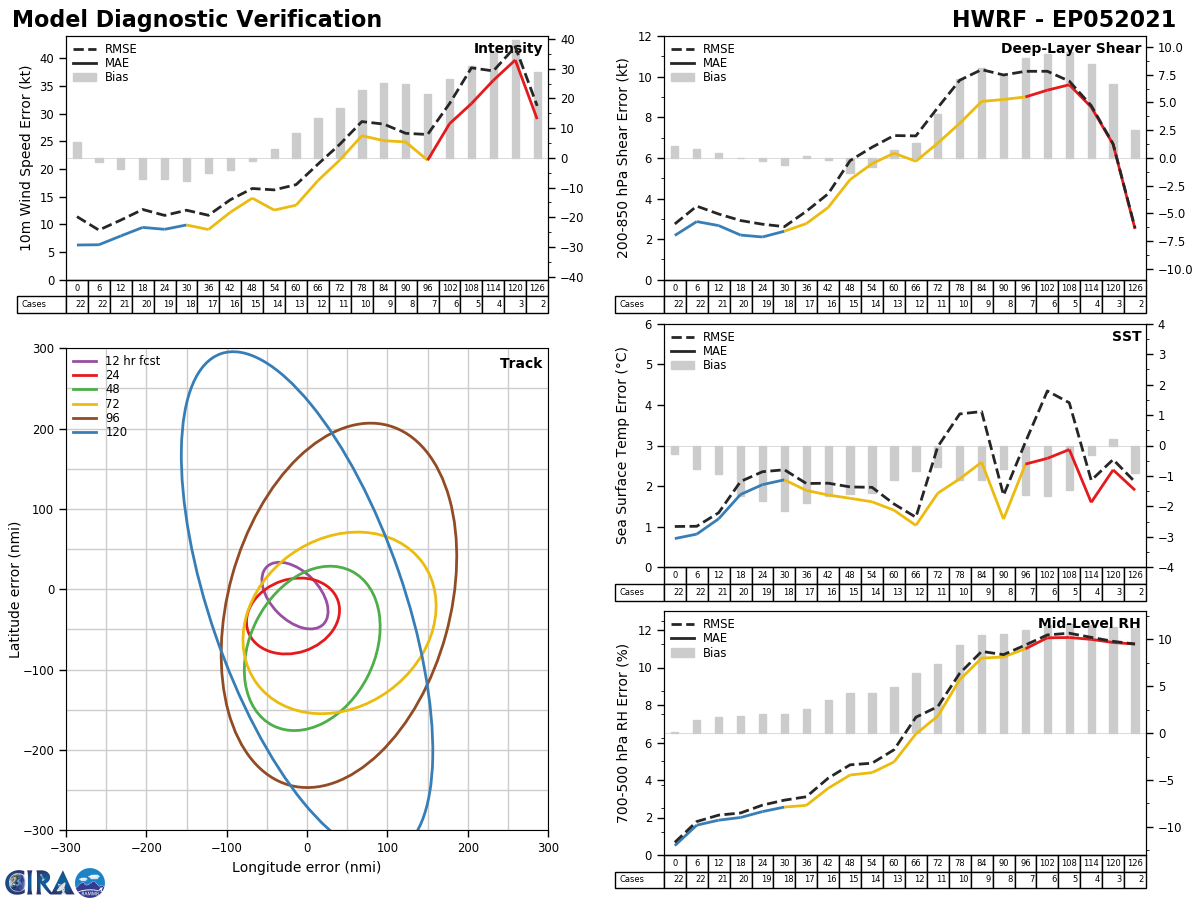 HWRF Diagnostic Verification - Intensity, 850-200 mb Shear, Sea Surface Temperature, and 700-500 mb Relative Humidity