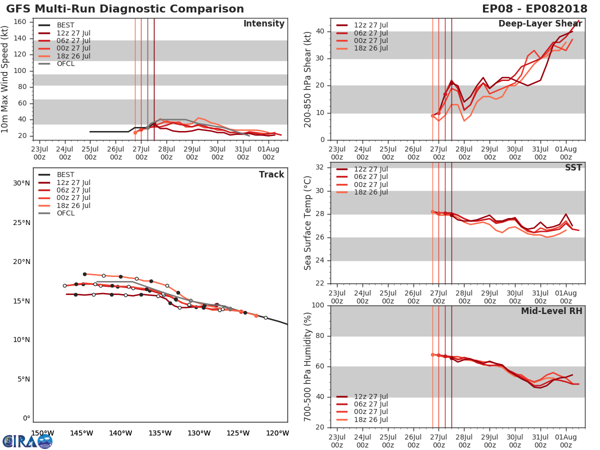 GFS Diagnostic Verification - Intensity, 850-200 mb Shear, Sea Surface Temperature, and 700-500 mb Relative Humidity