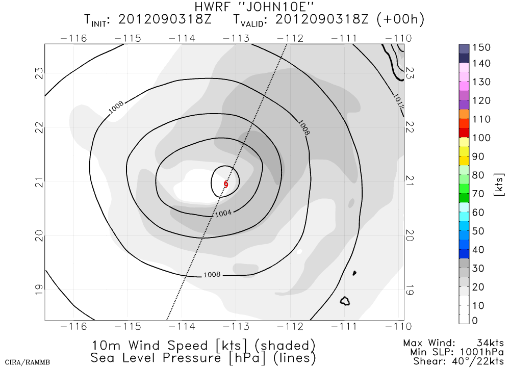 HWRF Along-Shear Vertical Cross Section - Wind Speed & Relative Humidity