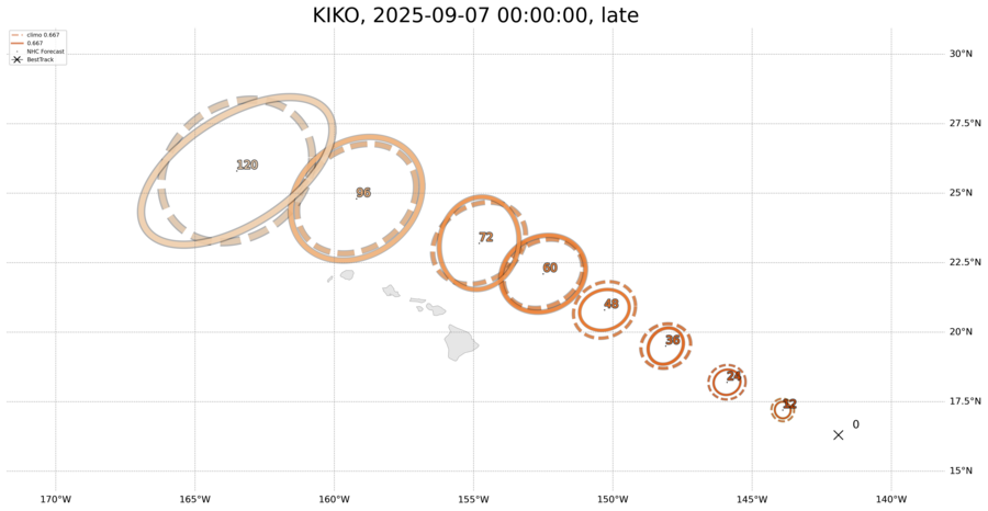Probability of a category 1-5 hurricane from NHC forecast error distribution
