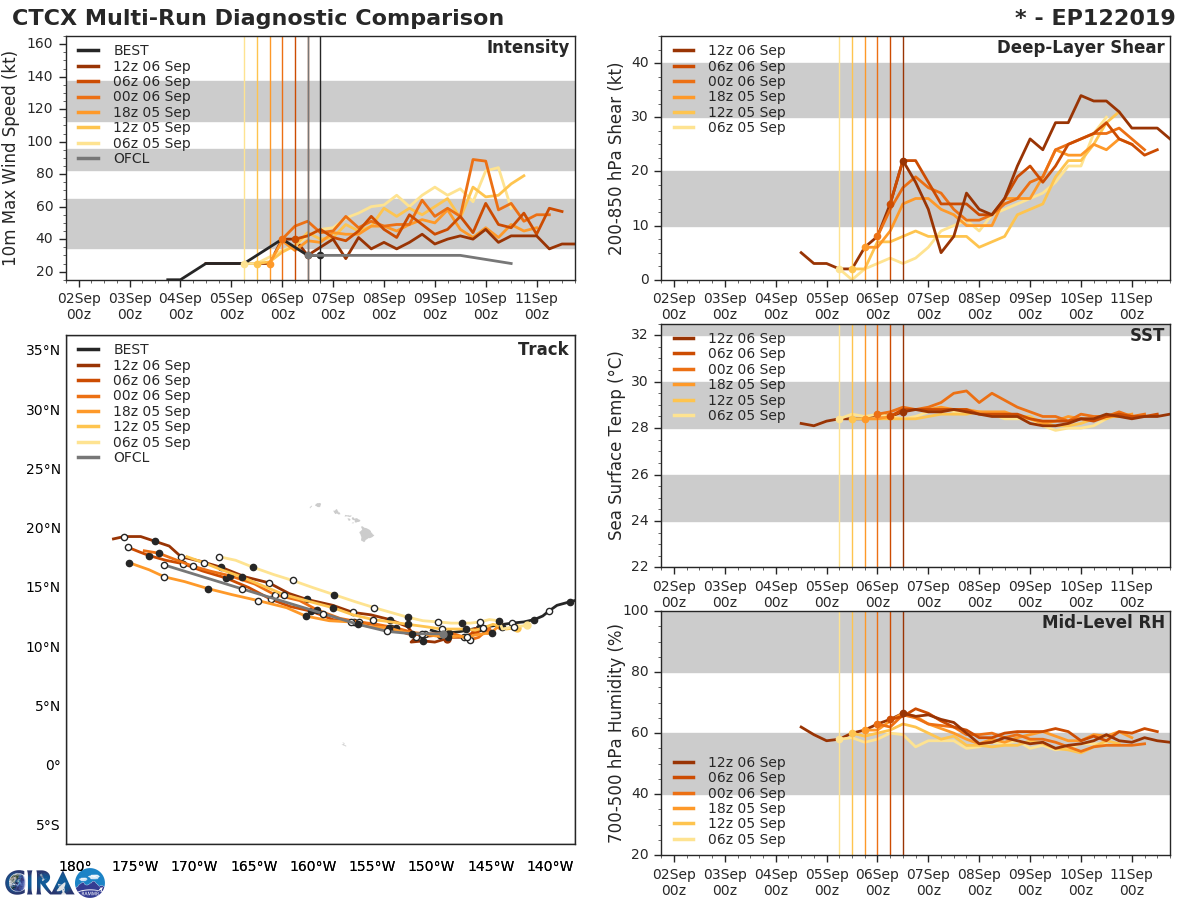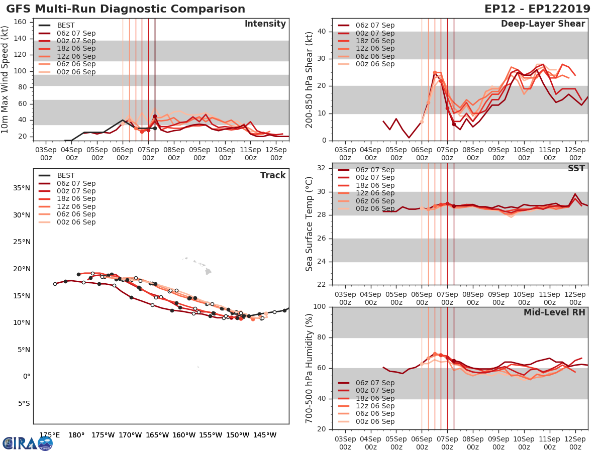 GFS Diagnostic Verification - Intensity, 850-200 mb Shear, Sea Surface Temperature, and 700-500 mb Relative Humidity