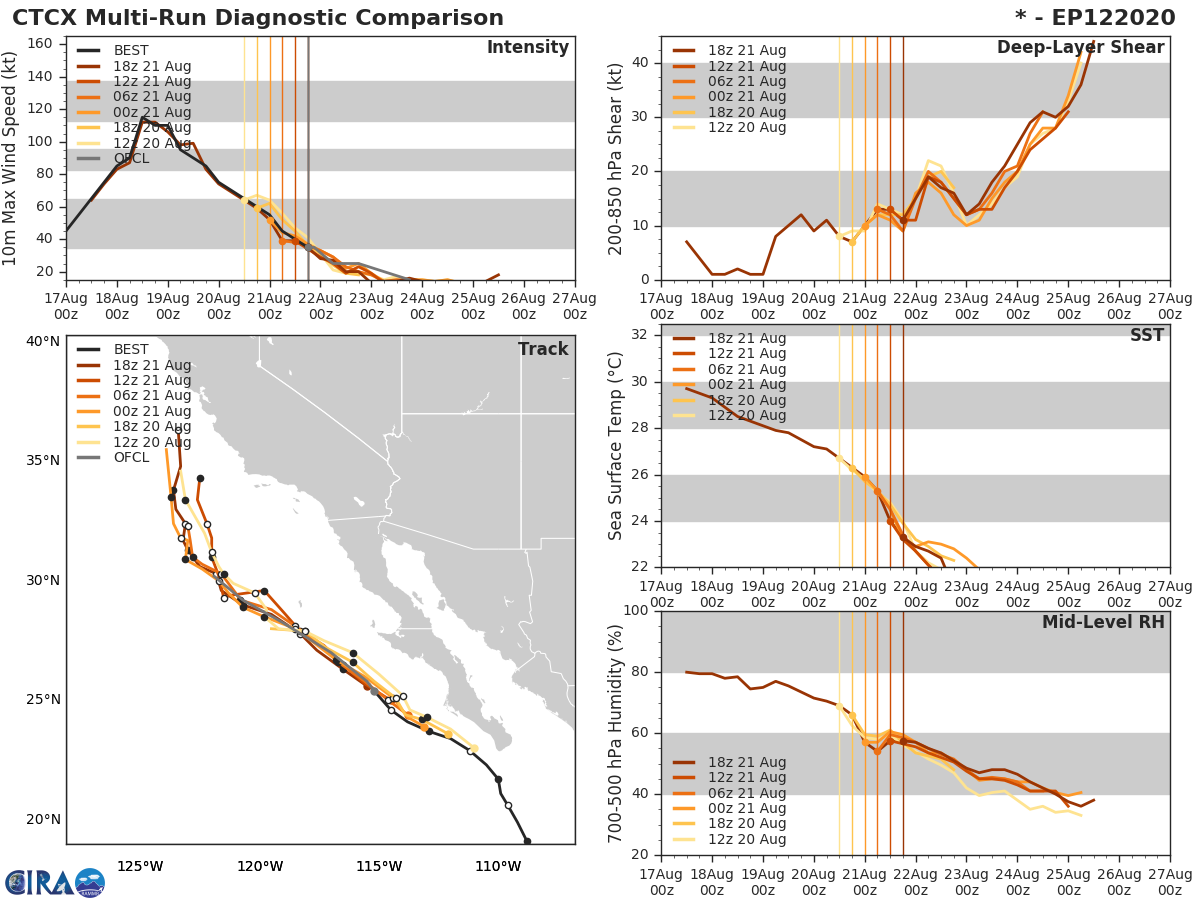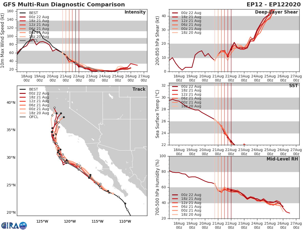 GFS Diagnostic Verification - Intensity, 850-200 mb Shear, Sea Surface Temperature, and 700-500 mb Relative Humidity