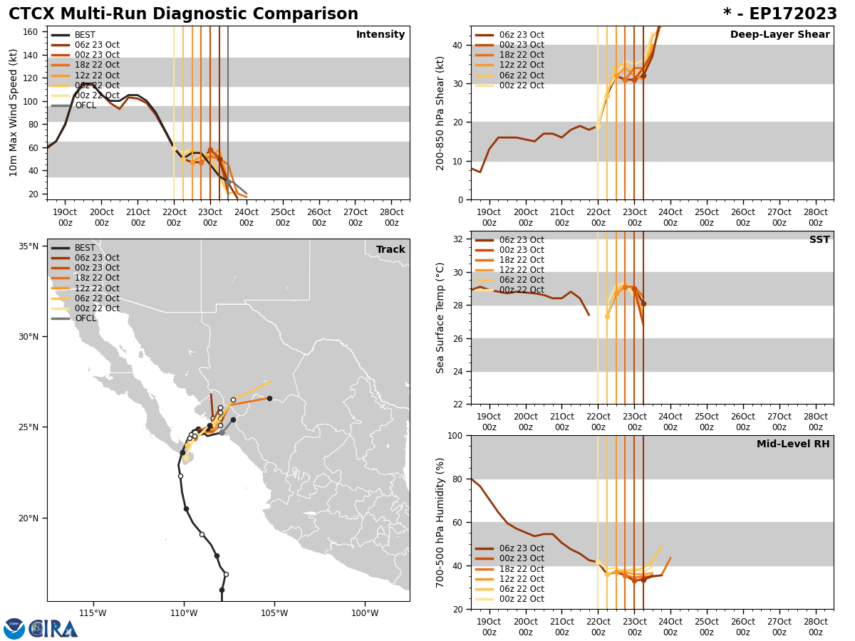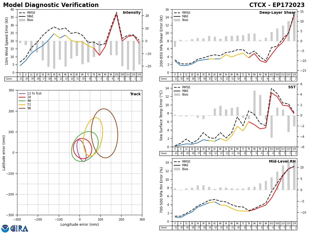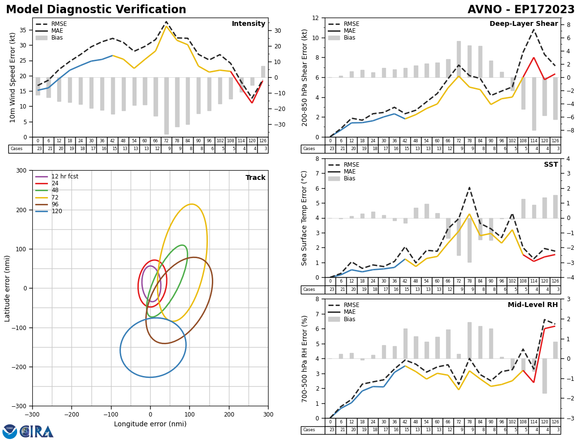 GFS Diagnostic Verification - Intensity, 850-200 mb Shear, Sea Surface Temperature, and 700-500 mb Relative Humidity