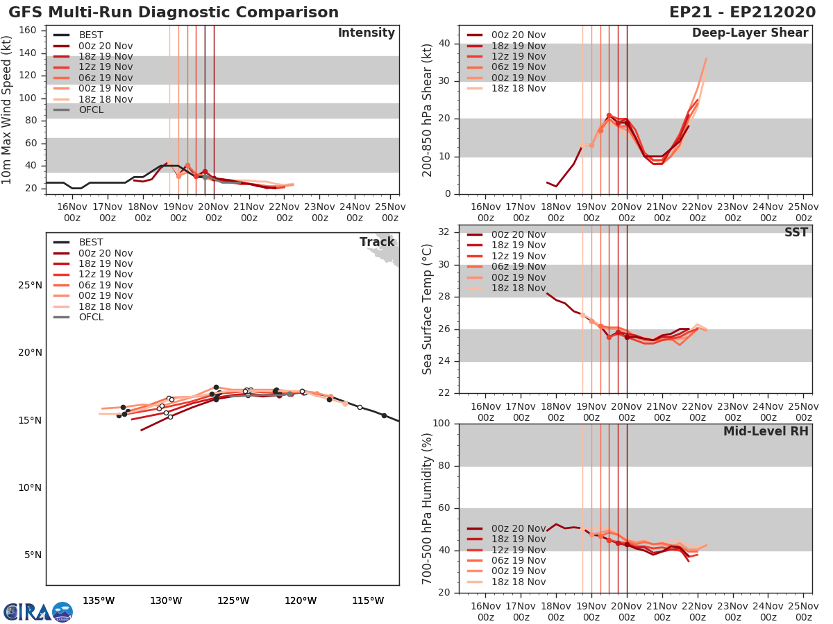 GFS Diagnostic Verification - Intensity, 850-200 mb Shear, Sea Surface Temperature, and 700-500 mb Relative Humidity