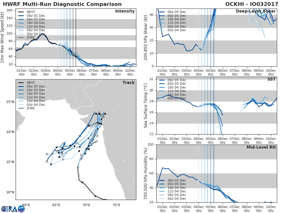 HWRF Diagnostic Verification - Intensity, 850-200 mb Shear, Sea Surface Temperature, and 700-500 mb Relative Humidity
