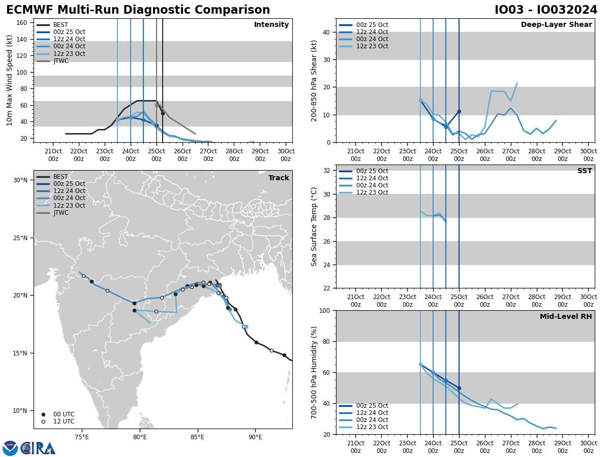 GFS Diagnostic Verification - Intensity, 850-200 mb Shear, Sea Surface Temperature, and 700-500 mb Relative Humidity