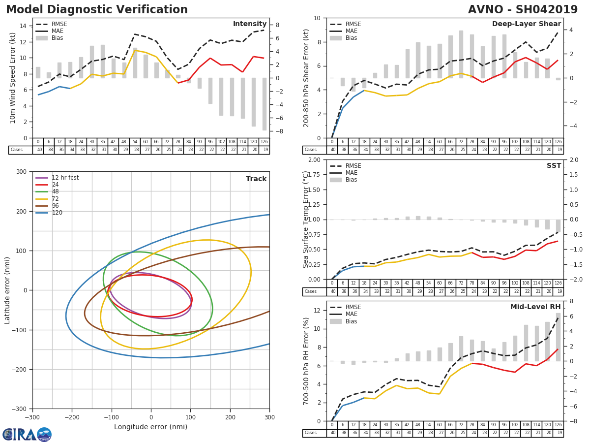 GFS Diagnostic Verification - Intensity, 850-200 mb Shear, Sea Surface Temperature, and 700-500 mb Relative Humidity