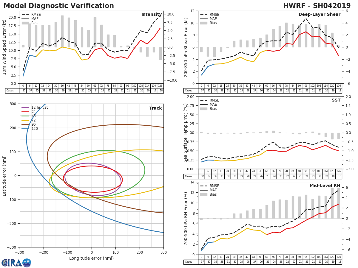 HWRF Diagnostic Verification - Intensity, 850-200 mb Shear, Sea Surface Temperature, and 700-500 mb Relative Humidity