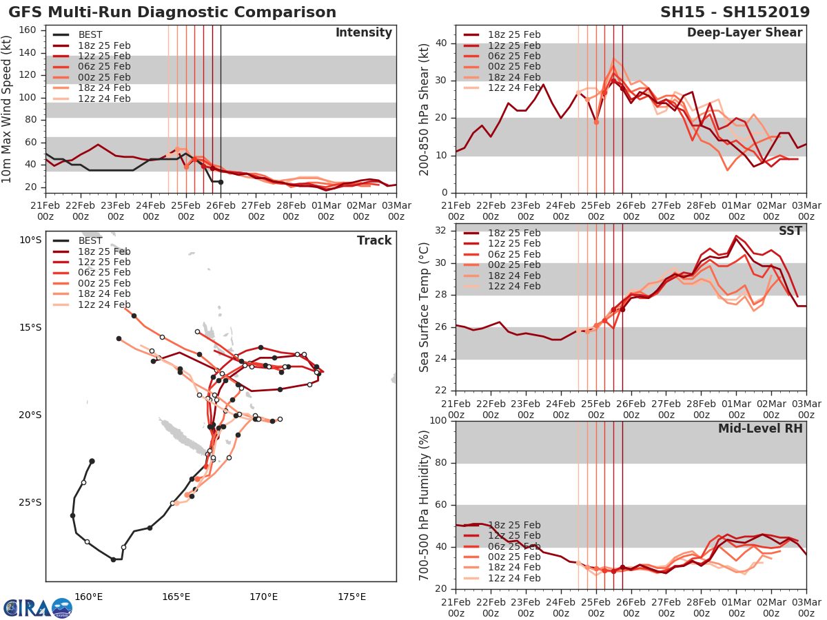 GFS Diagnostic Verification - Intensity, 850-200 mb Shear, Sea Surface Temperature, and 700-500 mb Relative Humidity
