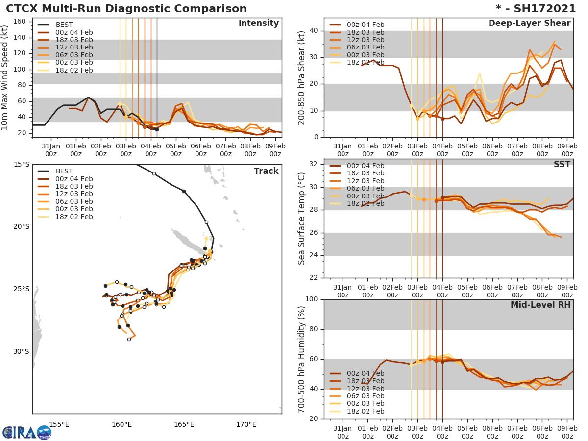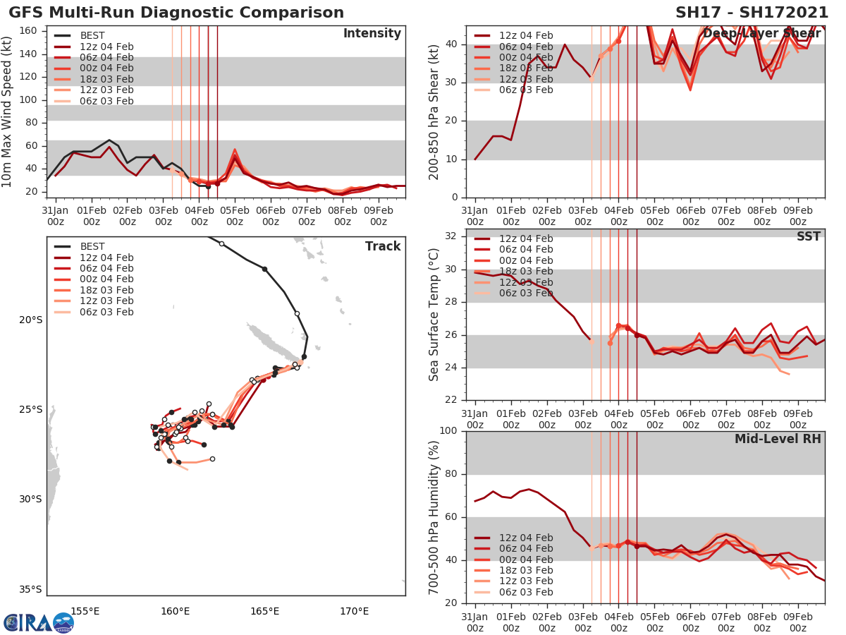 GFS Diagnostic Verification - Intensity, 850-200 mb Shear, Sea Surface Temperature, and 700-500 mb Relative Humidity