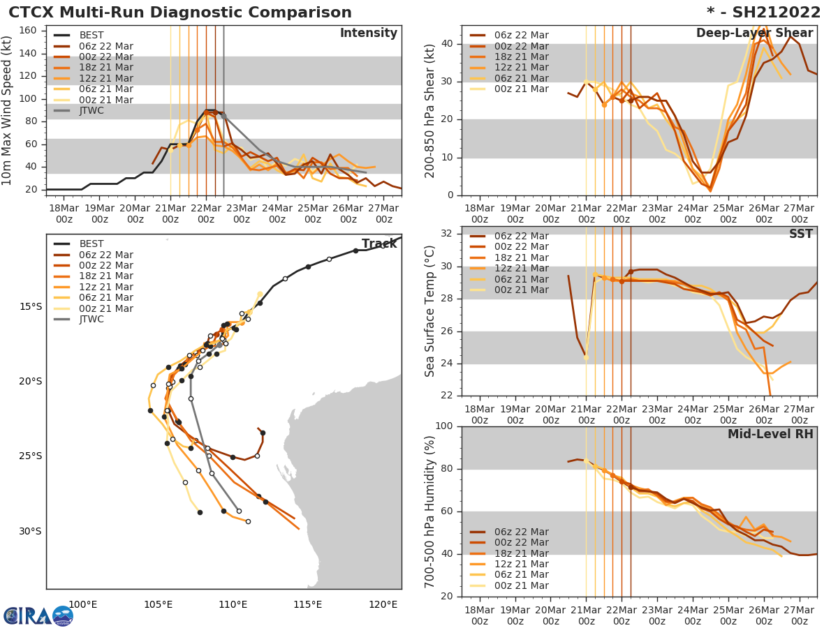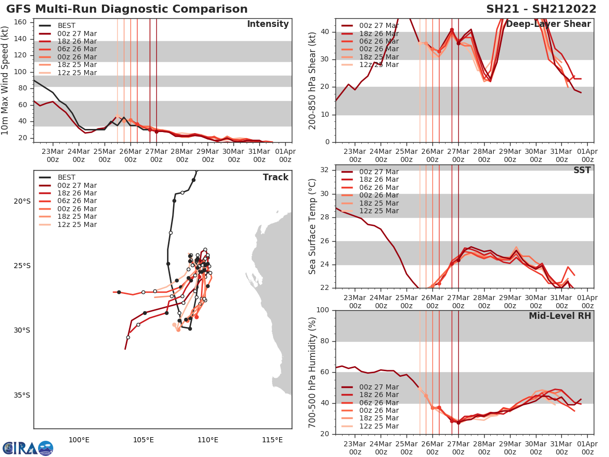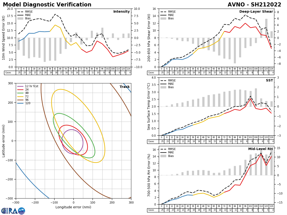 GFS Diagnostic Verification - Intensity, 850-200 mb Shear, Sea Surface Temperature, and 700-500 mb Relative Humidity