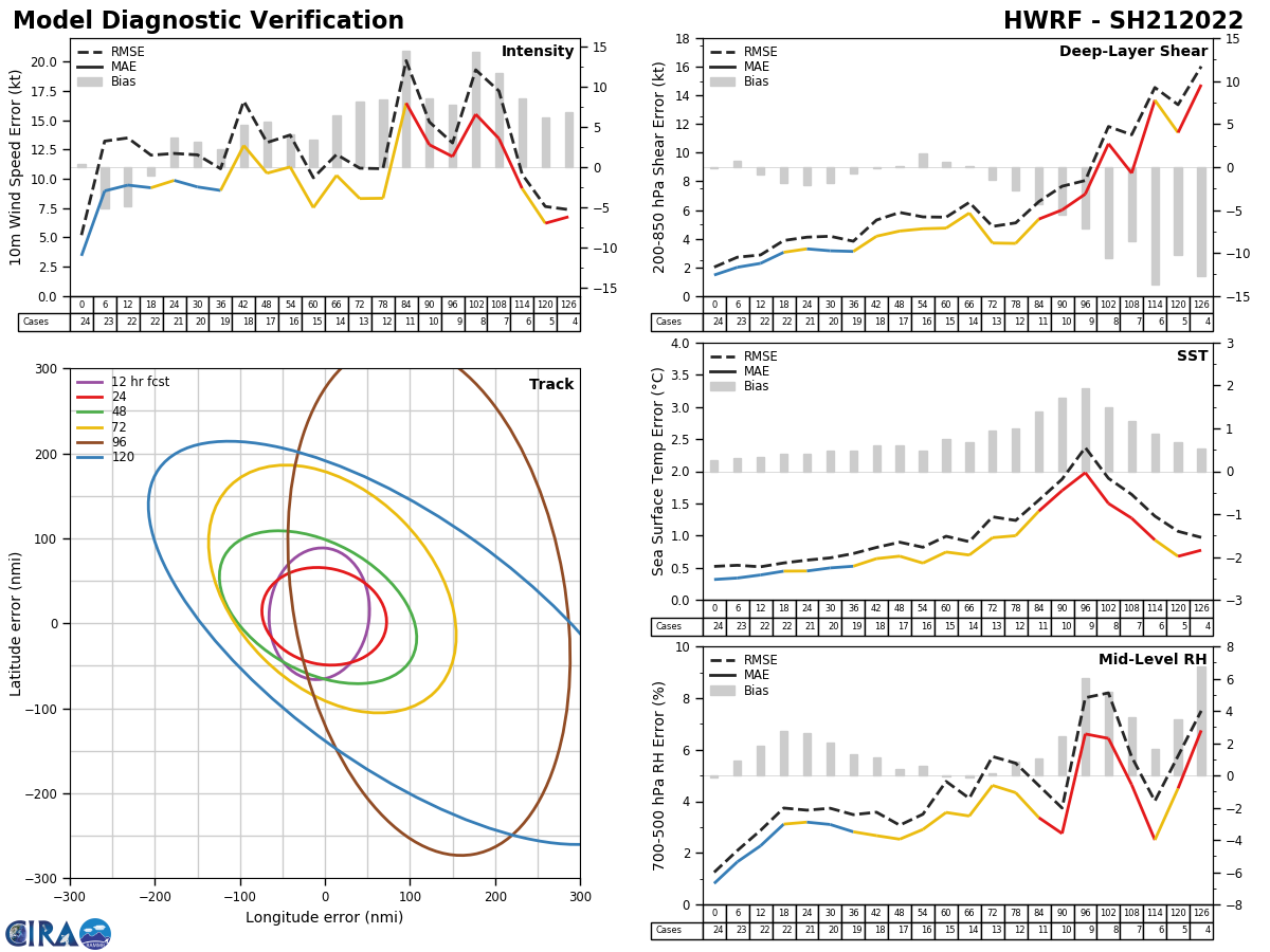 HWRF Diagnostic Verification - Intensity, 850-200 mb Shear, Sea Surface Temperature, and 700-500 mb Relative Humidity