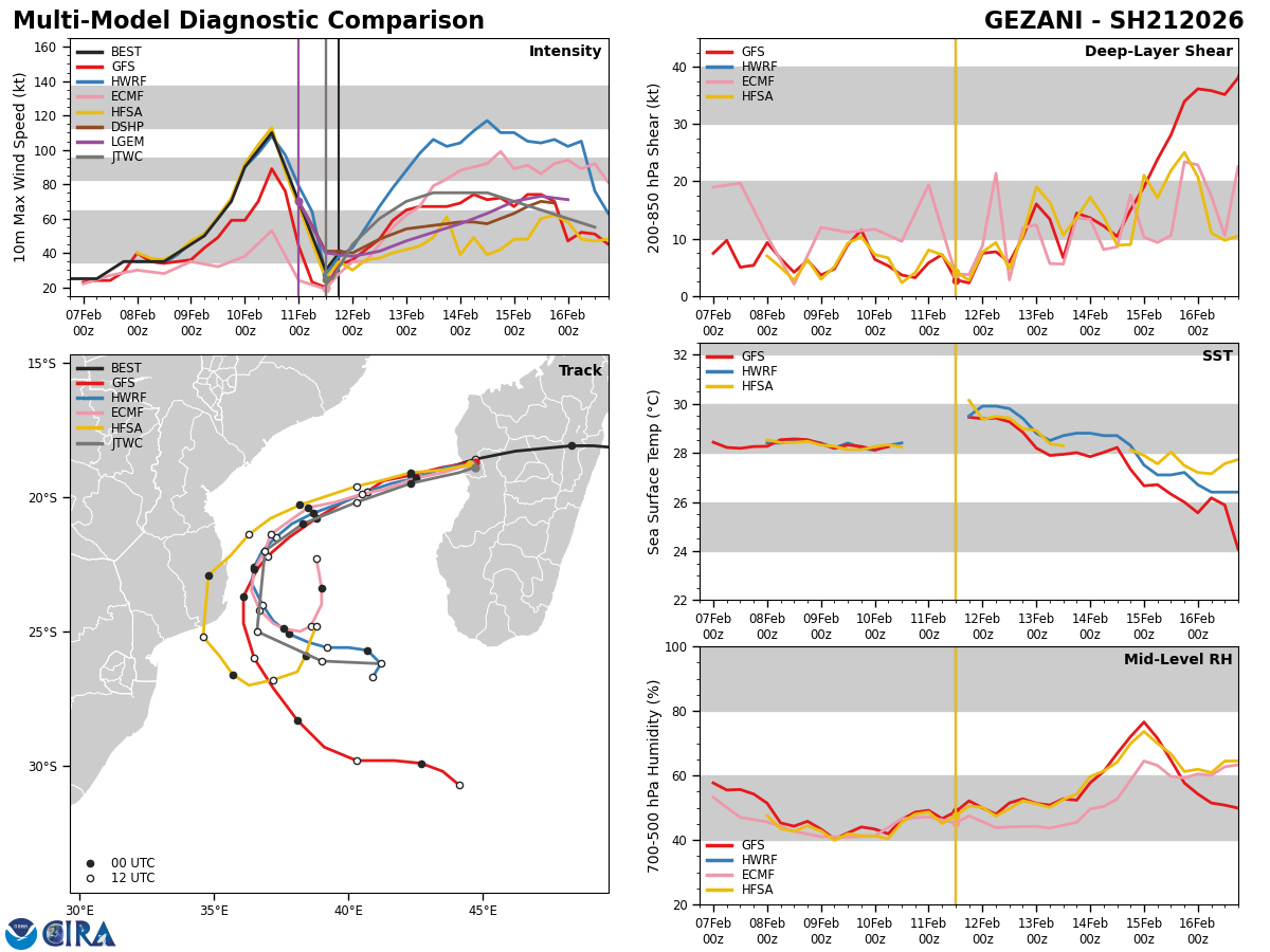 GFS Diagnostic Verification - Intensity, 850-200 mb Shear, Sea Surface Temperature, and 700-500 mb Relative Humidity