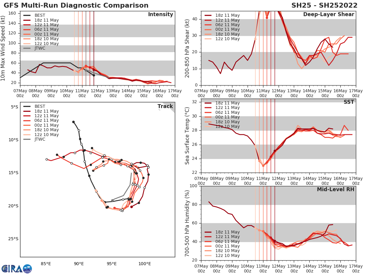 GFS Diagnostic Verification - Intensity, 850-200 mb Shear, Sea Surface Temperature, and 700-500 mb Relative Humidity
