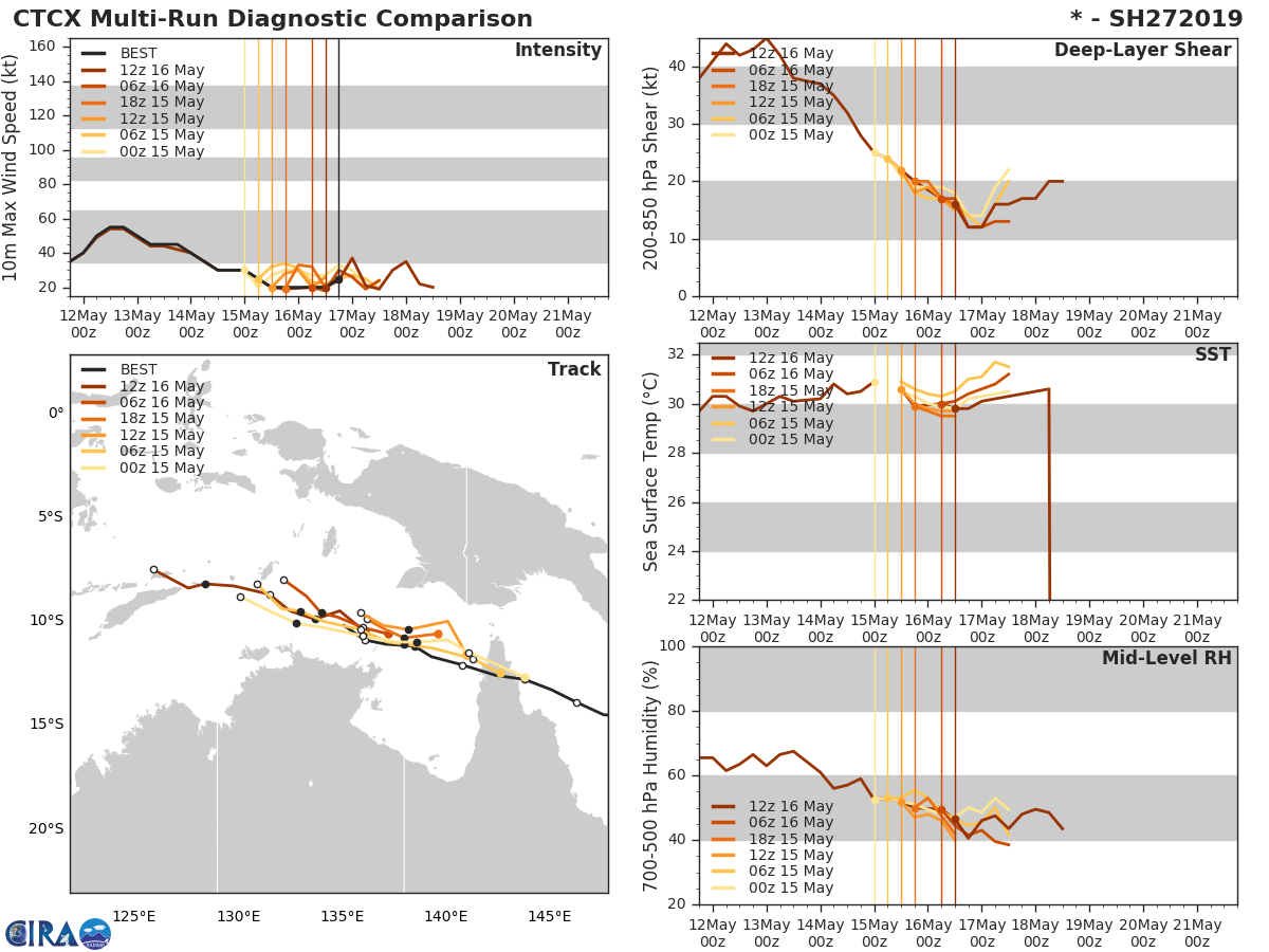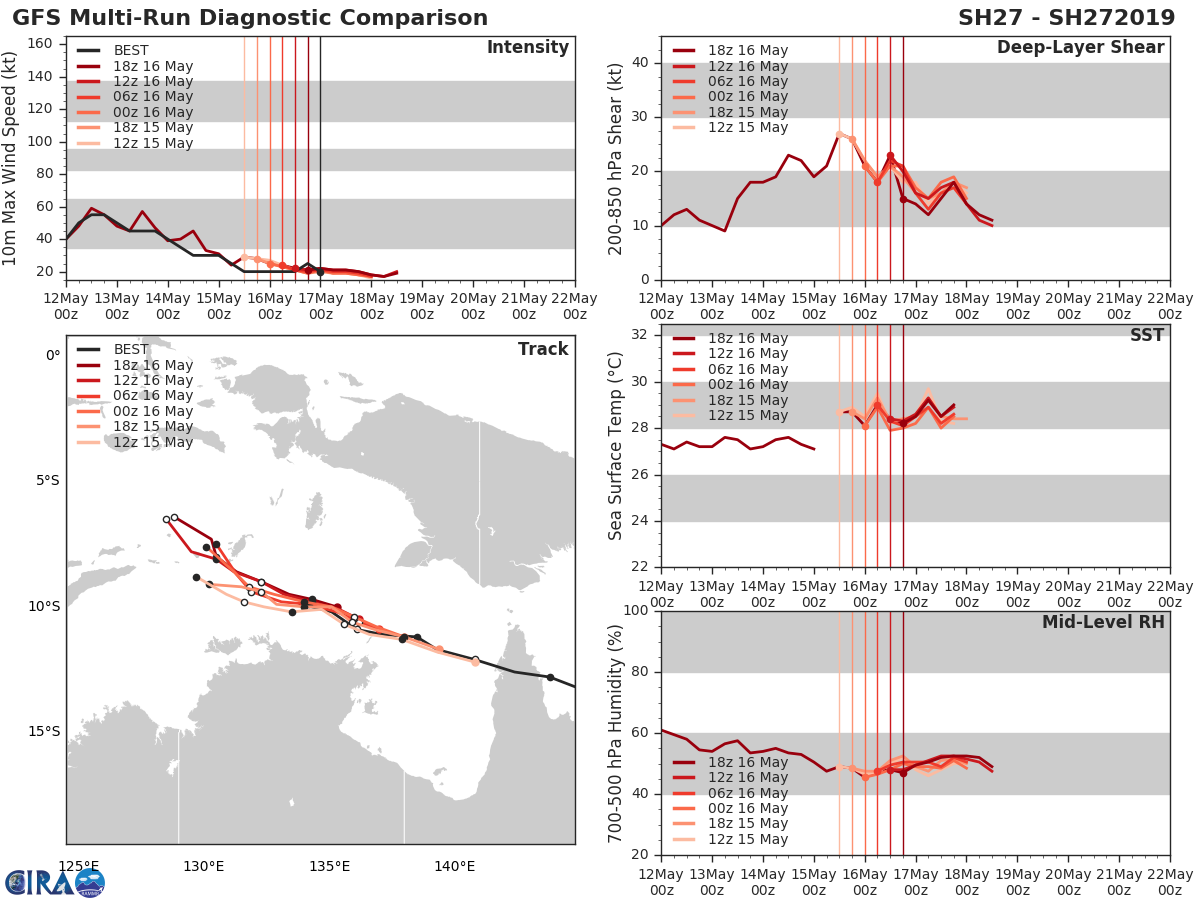 GFS Diagnostic Verification - Intensity, 850-200 mb Shear, Sea Surface Temperature, and 700-500 mb Relative Humidity