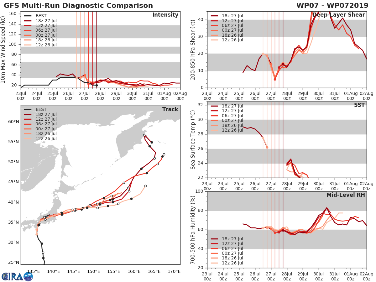 GFS Diagnostic Verification - Intensity, 850-200 mb Shear, Sea Surface Temperature, and 700-500 mb Relative Humidity