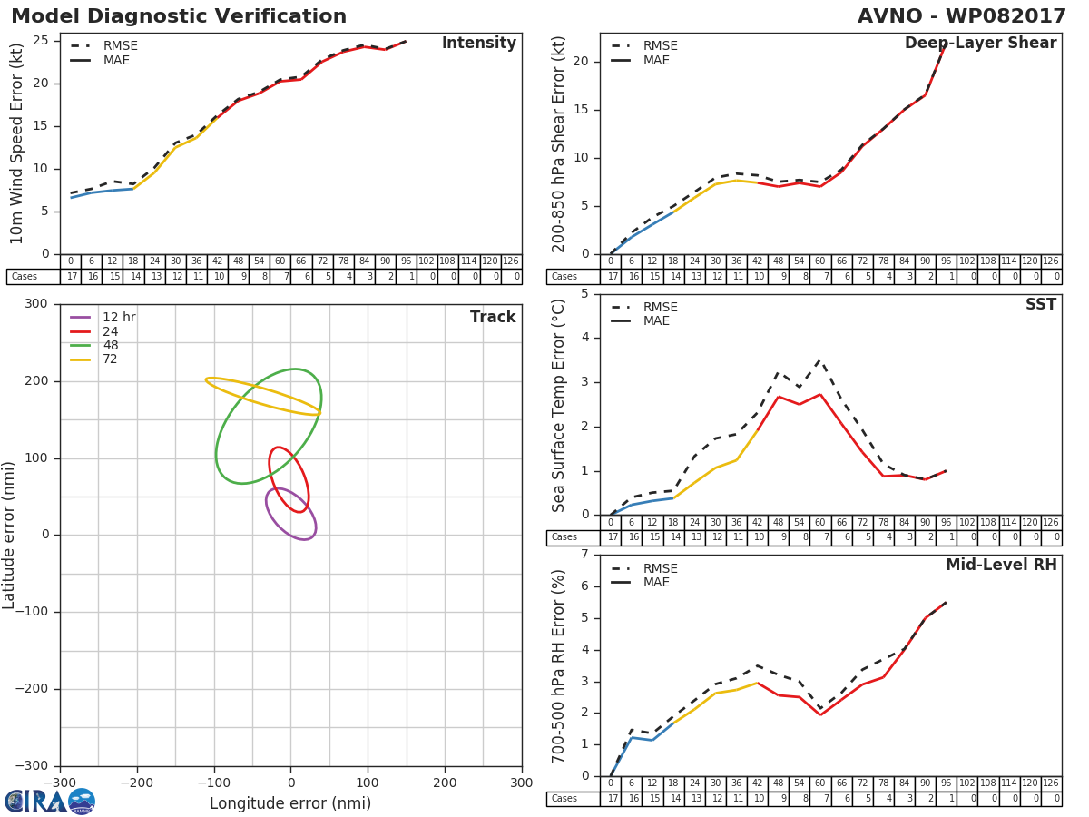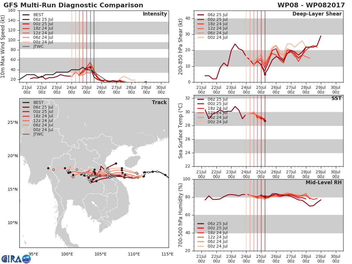 GFS Diagnostic Verification - Intensity, 850-200 mb Shear, Sea Surface Temperature, and 700-500 mb Relative Humidity