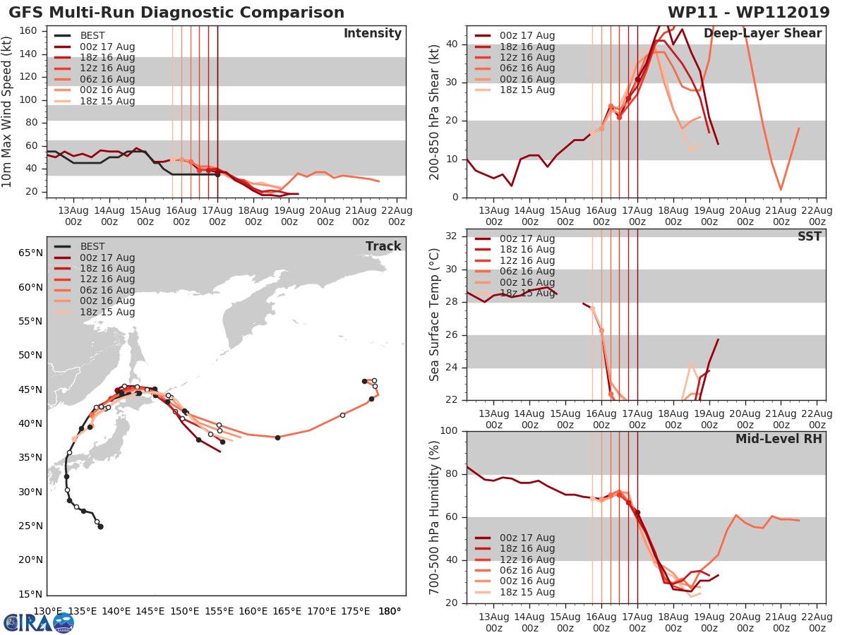 GFS Diagnostic Verification - Intensity, 850-200 mb Shear, Sea Surface Temperature, and 700-500 mb Relative Humidity