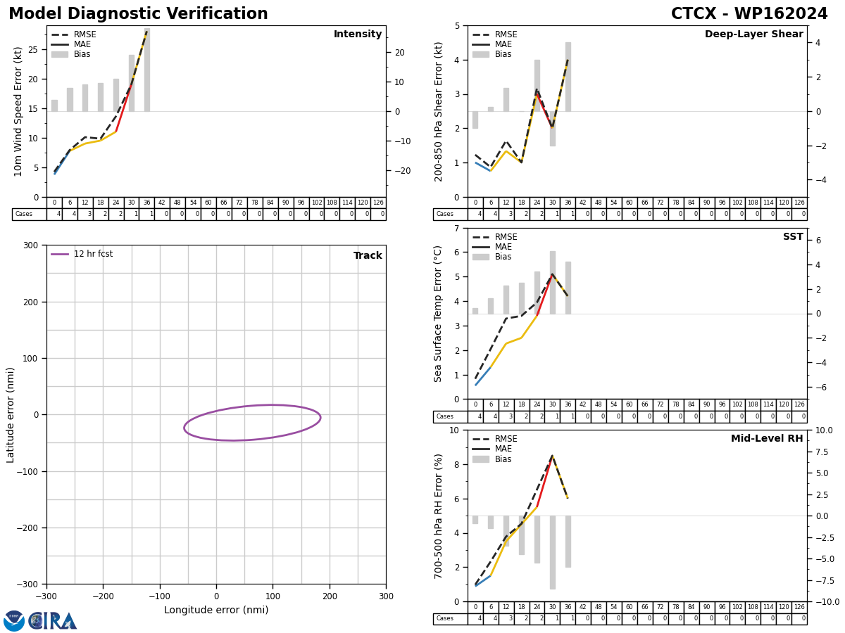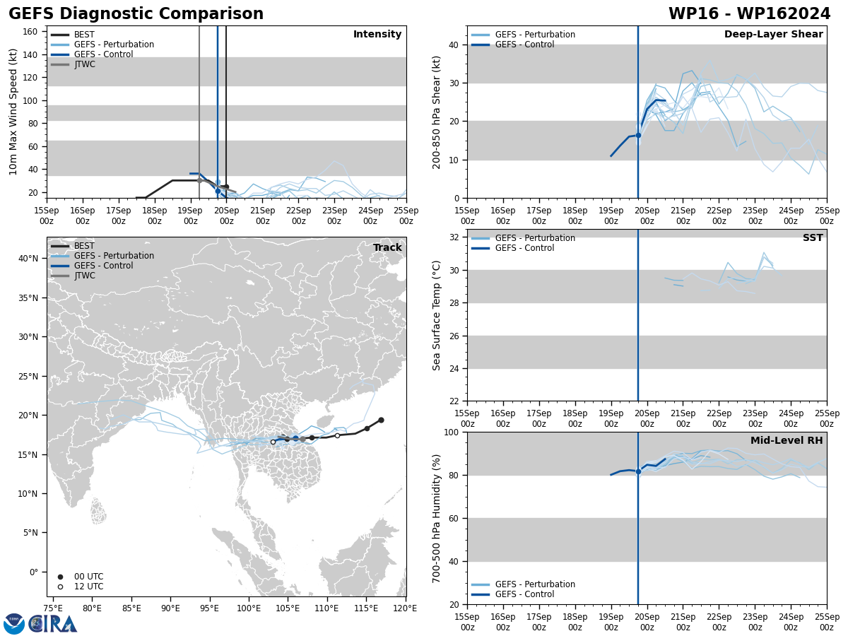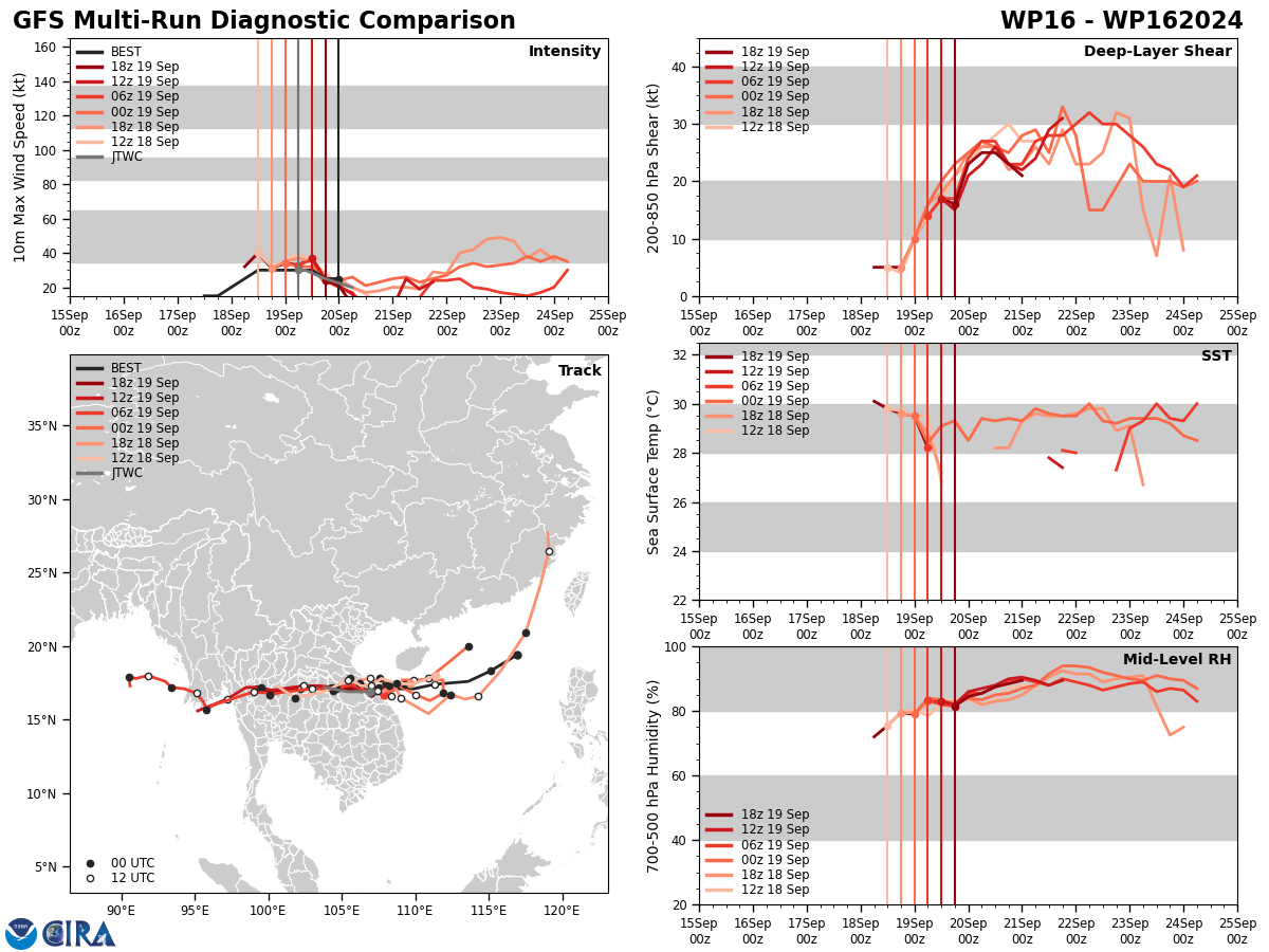 GFS Diagnostic Verification - Intensity, 850-200 mb Shear, Sea Surface Temperature, and 700-500 mb Relative Humidity