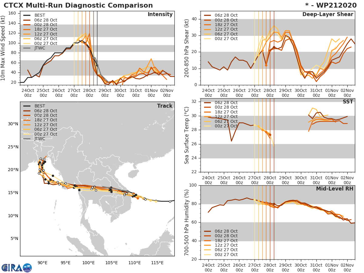 GFS Diagnostic Verification - Intensity, 850-200 mb Shear, Sea Surface Temperature, and 700-500 mb Relative Humidity