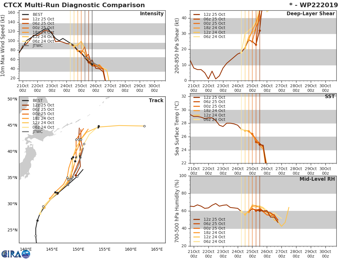 GFS Diagnostic Verification - Intensity, 850-200 mb Shear, Sea Surface Temperature, and 700-500 mb Relative Humidity