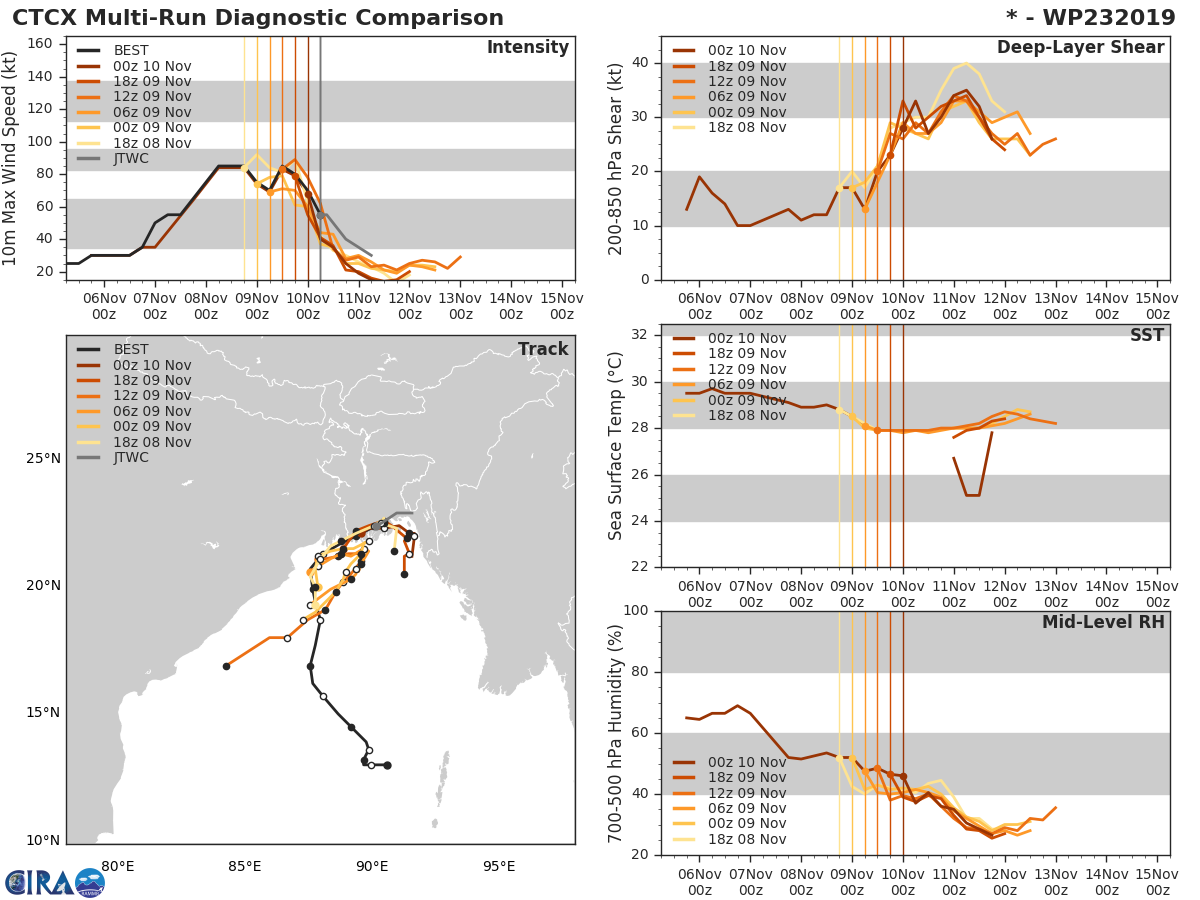 GFS Diagnostic Verification - Intensity, 850-200 mb Shear, Sea Surface Temperature, and 700-500 mb Relative Humidity