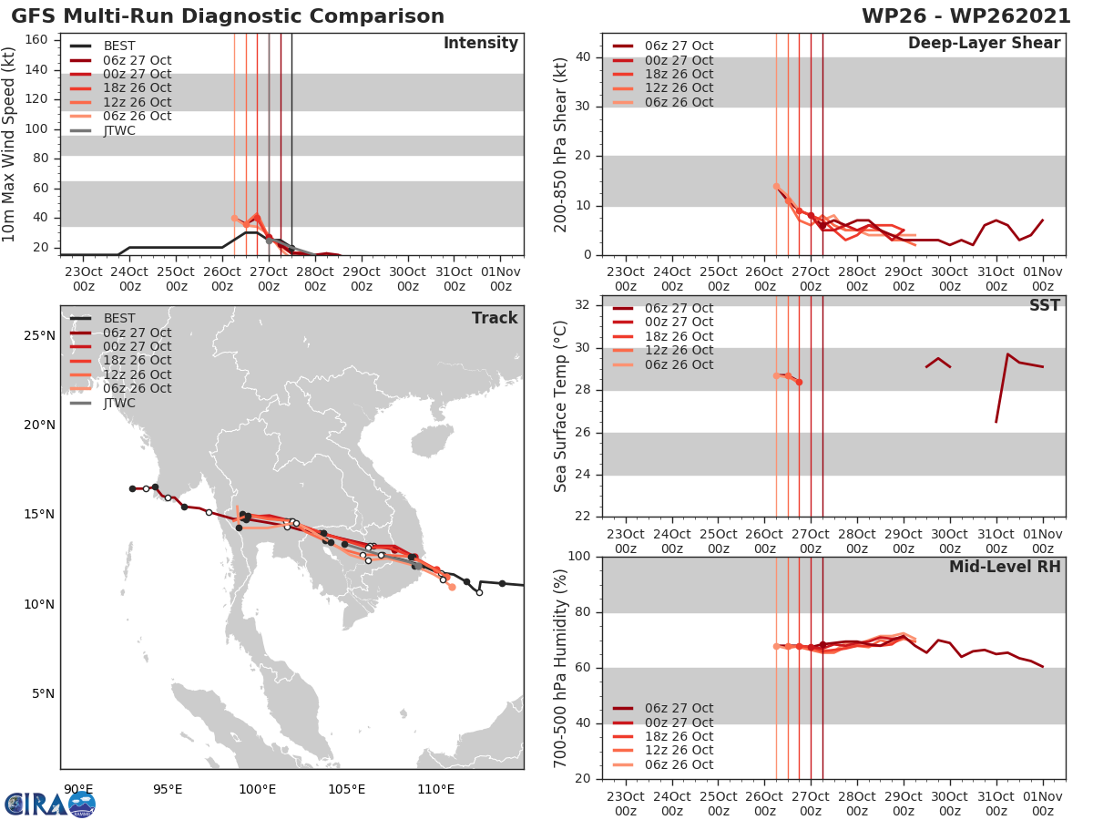 GFS Diagnostic Verification - Intensity, 850-200 mb Shear, Sea Surface Temperature, and 700-500 mb Relative Humidity