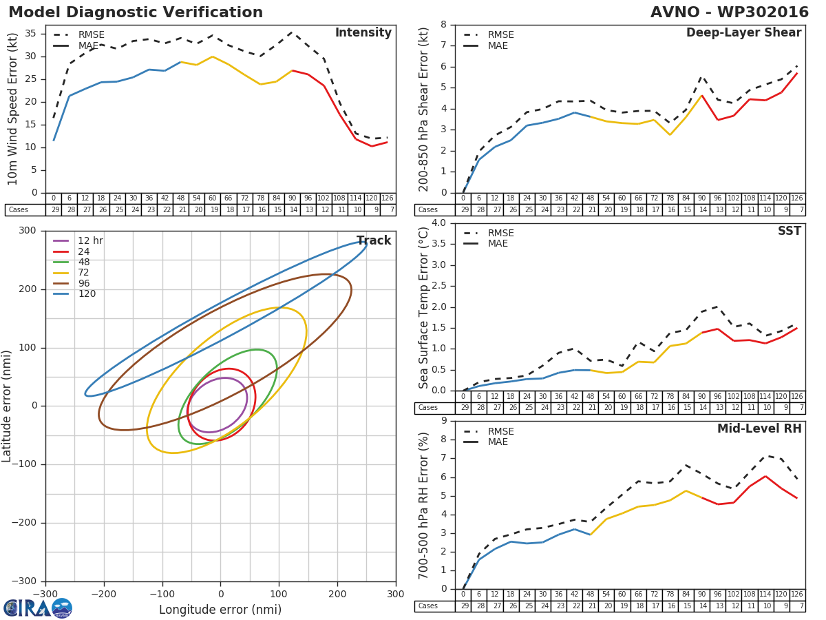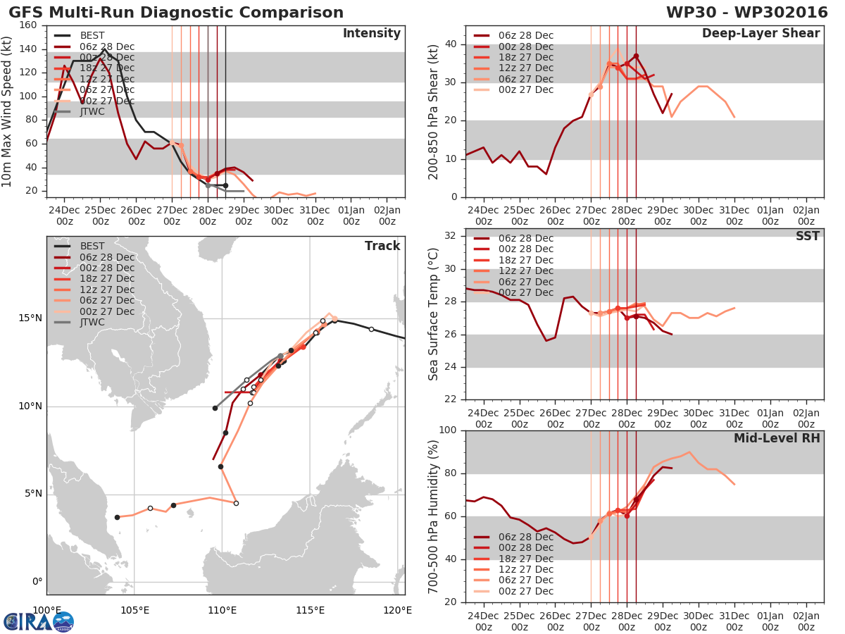GFS Diagnostic Verification - Intensity, 850-200 mb Shear, Sea Surface Temperature, and 700-500 mb Relative Humidity
