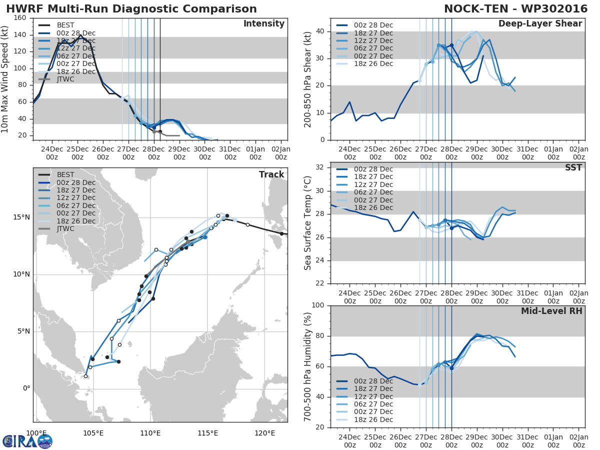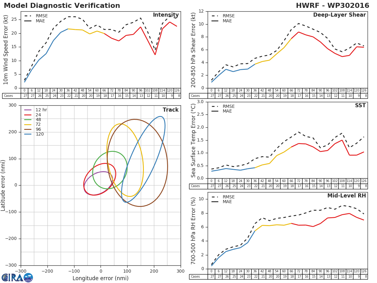 HWRF Diagnostic Verification - Intensity, 850-200 mb Shear, Sea Surface Temperature, and 700-500 mb Relative Humidity
