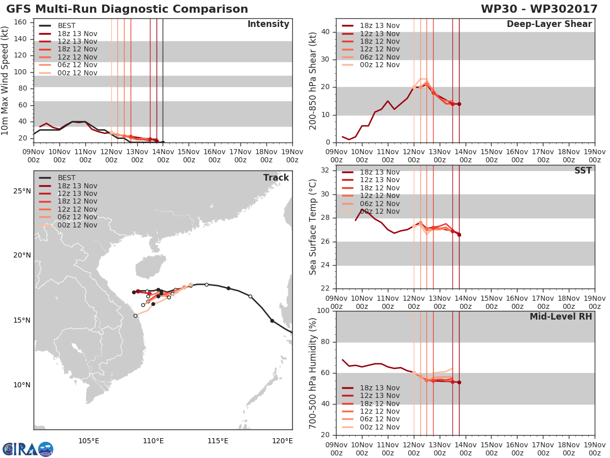 GFS Diagnostic Verification - Intensity, 850-200 mb Shear, Sea Surface Temperature, and 700-500 mb Relative Humidity