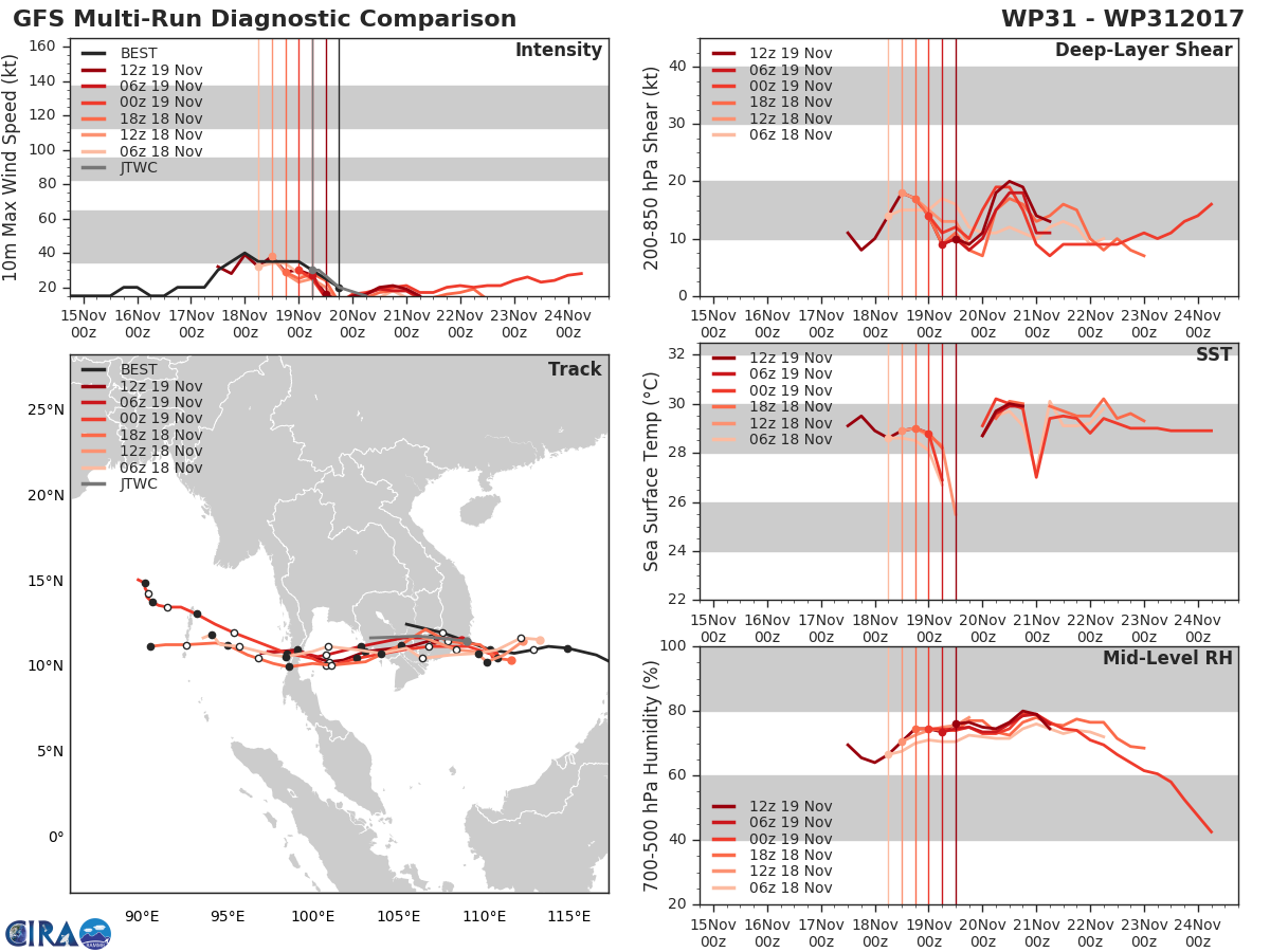 GFS Diagnostic Verification - Intensity, 850-200 mb Shear, Sea Surface Temperature, and 700-500 mb Relative Humidity