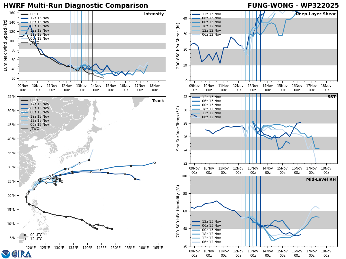 HWRF Diagnostic Verification - Intensity, 850-200 mb Shear, Sea Surface Temperature, and 700-500 mb Relative Humidity