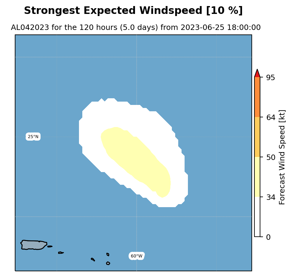 Experimental WTCM-based Wind Exceedance 10th percentile