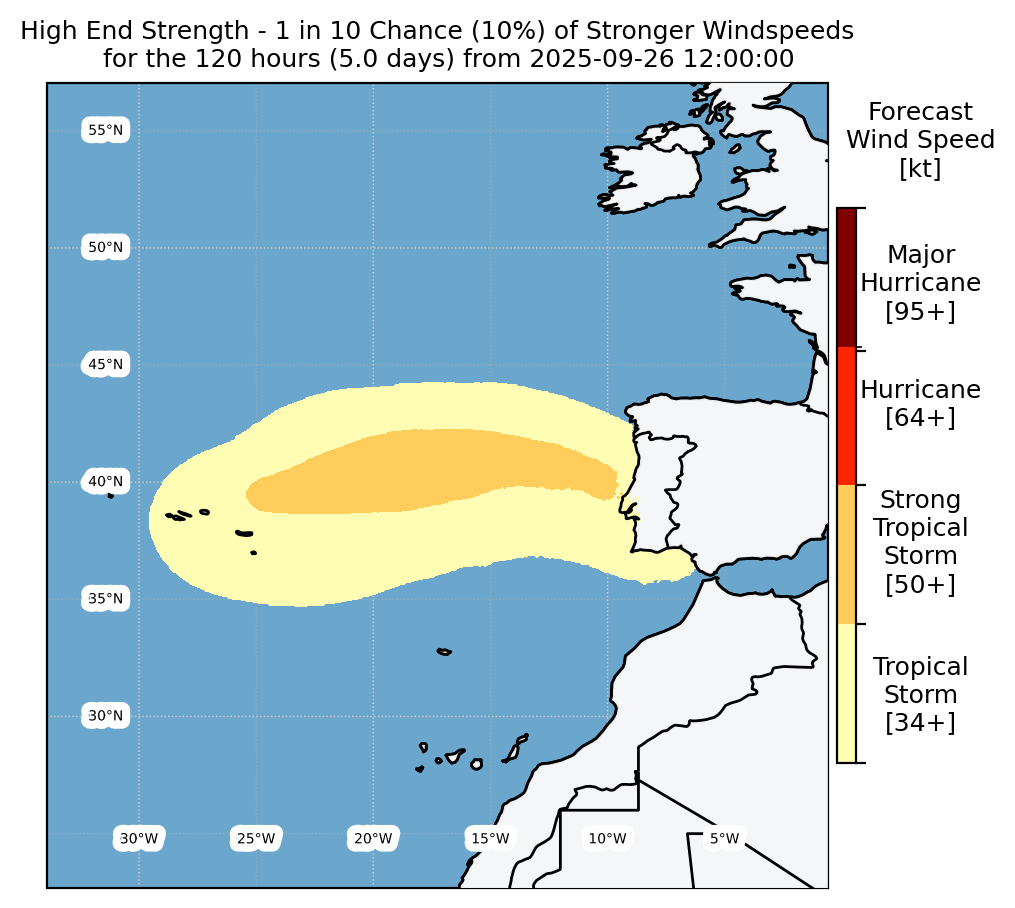 Experimental WTCM-based Wind Exceedance 10th percentile