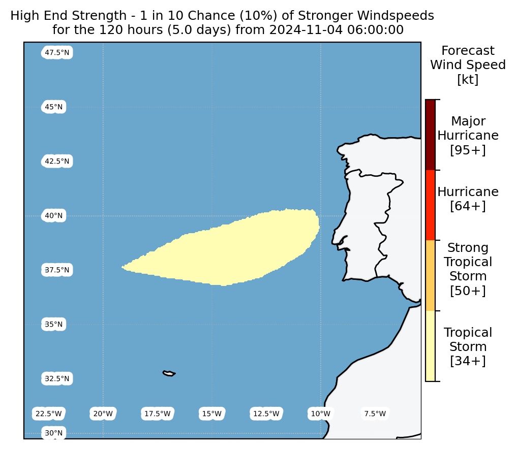 Experimental WTCM-based Wind Exceedance 10th percentile